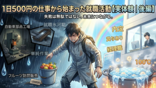 新卒で1日500円の仕事に就き、過酷な環境の中で退職。その後も製造業での厳しい労働や事故を経験しながら、最終的に経理職に就くまでの実体験を紹介します。就職活動で失敗しないためのポイントも解説。