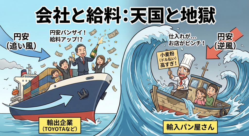 1ドル200円は、日本中が困るだけじゃない。実は、泣いて喜ぶ人もいるんだ。会社によって「天国」か「地獄」かハッキリ分かれる。