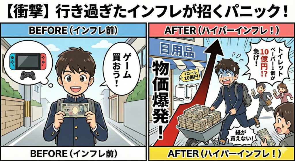 インフレが行き過ぎると、お金はただの「数字が書かれた紙切れ」になってしまいます。
