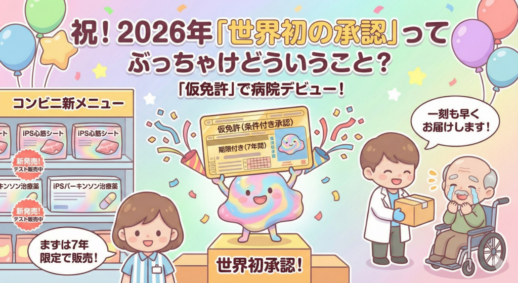 そんなワクワクするニュースが飛び込んできました。2006年に山中伸弥教授が発見し、世界中を驚かせた**「iPS細胞」。ノーベル賞まで取ったこのすごい技術が、ついに2026年、「世界で初めて」**本物の製品として認められ、実際の治療に使われることになったんです!
