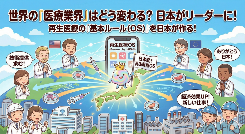 iPhoneのiOSや、GoogleのAndroidのように、これからの再生医療(細胞で治す医療)の**「基本ルール(OS)」**を日本が握るようなものです。