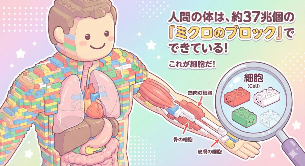 まずは基本中の基本から。僕たちの体は、実は**「ミクロのブロック」**でできています。