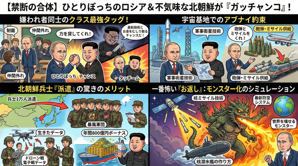 1. 結論:ひとりぼっちのロシアと、チャンスを狙う北朝鮮が「ガッチャンコ」した!