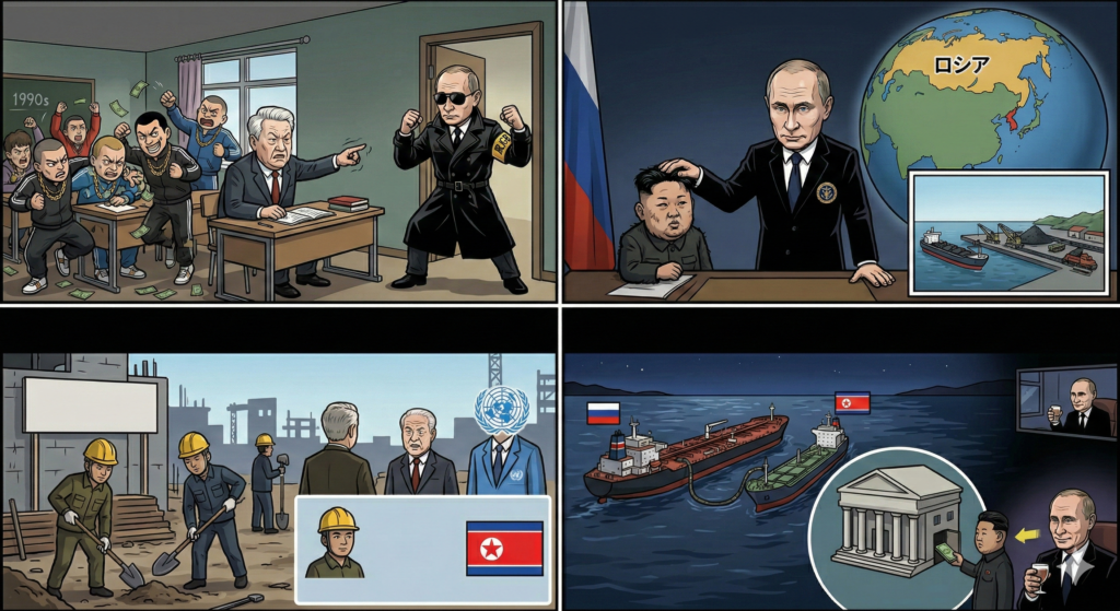 プーチンさんのすごい(怖い)ところは、世界の前では「北朝鮮は核を作っちゃダメだ!」と怒りながら、裏では**「生かさず殺さず」のサポート**をしていたことです。その「抜け穴」の具体例がこちら!