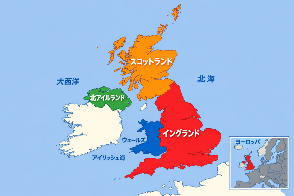 まず、大前提を整理しましょう。私たちが「イギリス」と呼んでいるのは、以下の4つの「国(カントリー)」が合体した姿です。